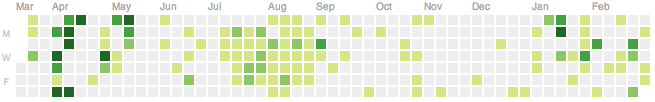 At MIT, even with a deadline looming, my schedule is chunky with constant context switches. During the summer at Adobe, research was literally my job and I worked at it consistently. The difference is illustrated by my GitHub activity log:
